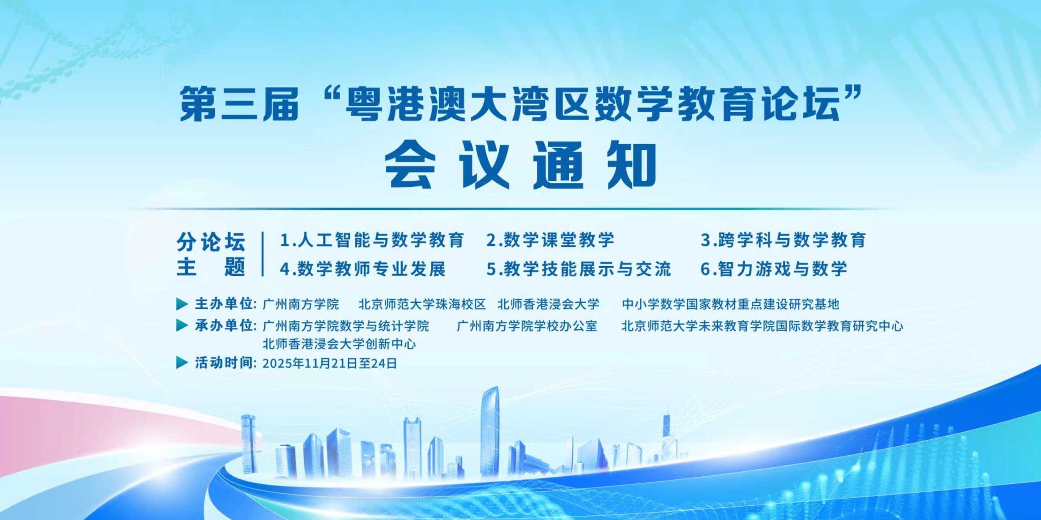 为进一步推动数学教育在跨学科背景下的深度融合与创新实践,助力粤港澳大湾区构建高质量教育体系,第三届“粤港澳大湾区数学教育论坛”于2025年11月21日-24日在广州南方学院举办。会议邀请全国著名数学家、数学教育专家和中学一线骨干教师,围绕“跨学科视角下的数学教育:融合与创新”主题,围绕人工智能时代的数学教学、AI+跨学科综合实践、数学教育的跨学科实践、AI+数学教育评价与改革、数学课程的教学评一致等内容展开深入研讨。...