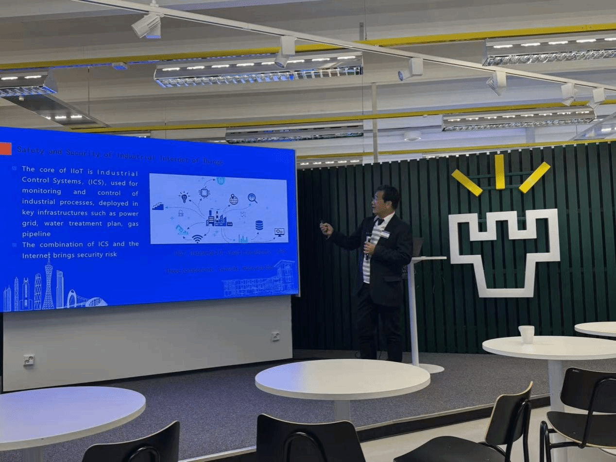 会议期间,杨双华教授还应邀访问了本次会议主办单位——芬兰奥卢大学(University of Oulu)。奥卢大学是芬兰规模最大的高校之一,长期名列全球大学排名前列,并与多所国际顶尖高校保持密切合作。该校控制工程实验室与杨双华教授渊源深厚,尤其在基于网络的工业过程监控、建模与安全等研究领域,深受杨双华教授早期工作的启发与推动,其2004年出版的研究报告用大篇幅介绍了杨双华教授的相关成果。此次访问中,双方围绕共同关注的学术议题进行了深入交流,并在人才培养、科学研究等方面达成初步合作共识,为两校未来建立长期、稳定的国际合作机制奠定了坚实基础。
