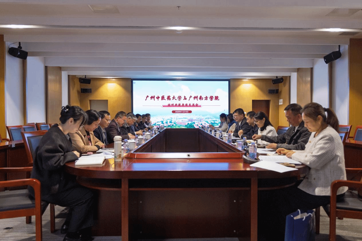 为深入学习贯彻党的二十届四中全会精神,落实省委教育工委相关工作部署,推动学校党建和思政工作高质量发展,11月19日下午,广州中医药大学与广州南方学院结对共建座谈会在中和楼第一会议室召开。广州中医药大学党委书记陈文锋,我校党委书记李建超、常务副校长傅爱兰教授,以及双方结对共建工作组成员等参加座谈会。会议由学校党委副书记植秀聪主持。