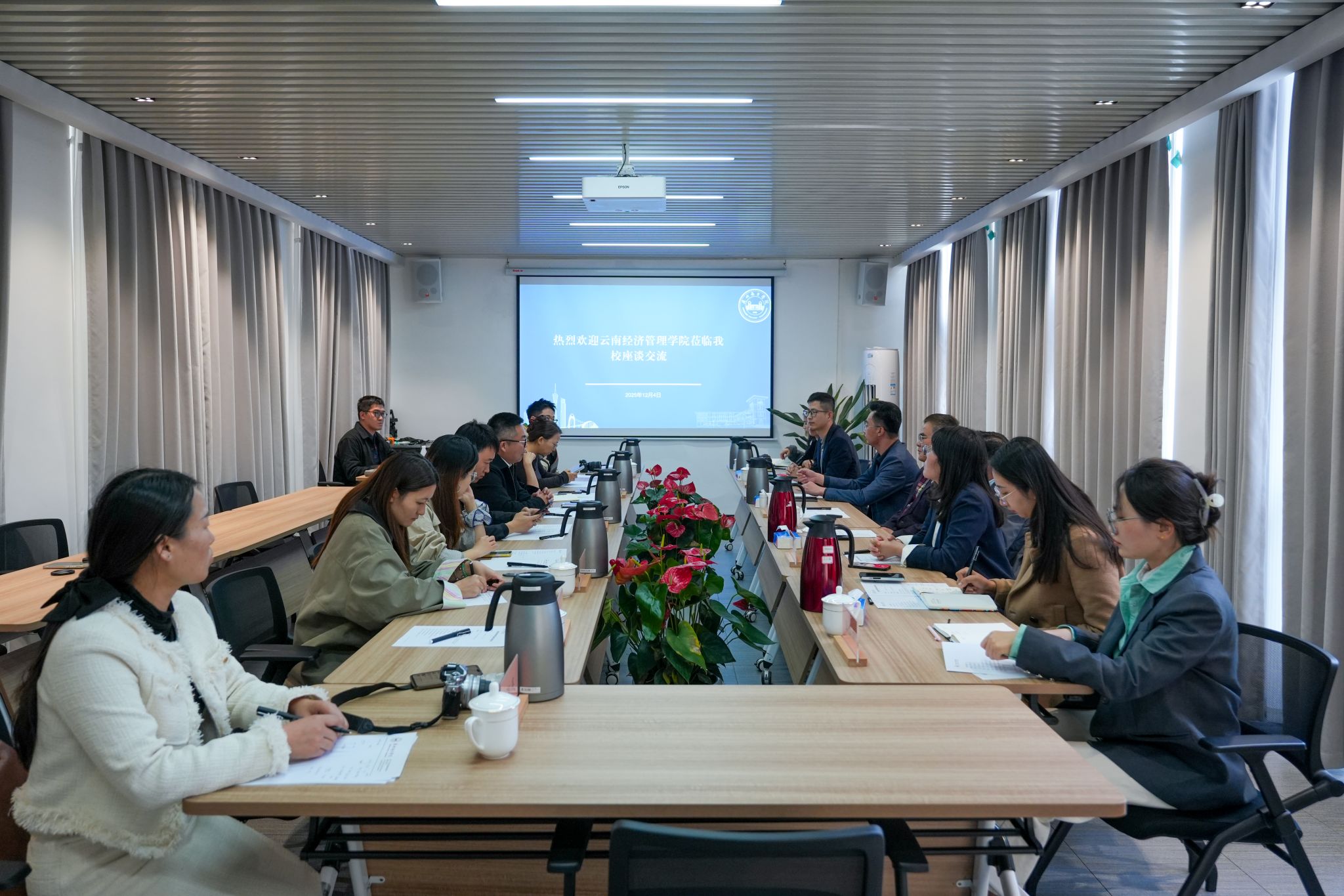 12月4日下午,云南经济管理学院校长助理者胜祥一行来访我校,双方围绕高水平应用型大学建设、学校品牌体系建设与传播、招生工作创新等议题开展交流。广州南方学院党委副书记植秀聪、校长助理蒋玮、汪文平等校领导及相关职能部门负责人出席交流活动。