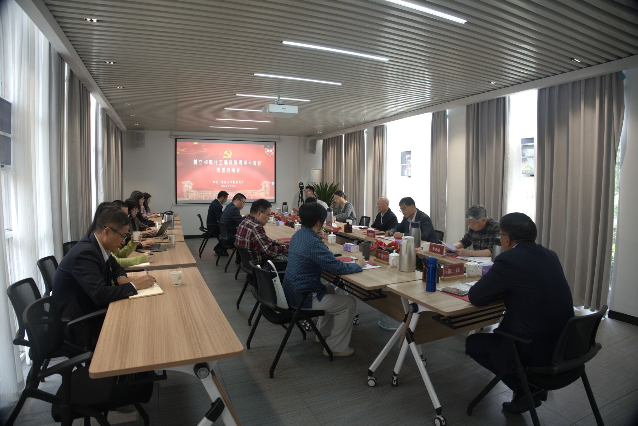 3月2日,我校召开树立和践行正确政绩观学习教育启动部署会,认真学习习近平总书记关于树立和践行正确政绩观的重要论述和重要指示精神,传达学习中共中央办公厅《关于在全党开展树立和践行正确政绩观学习教育的通知》精神,研究部署学校学习教育方案。校领导、党委委员及党委组织统战部负责人参加会议。学校党委书记李建超主持会议。