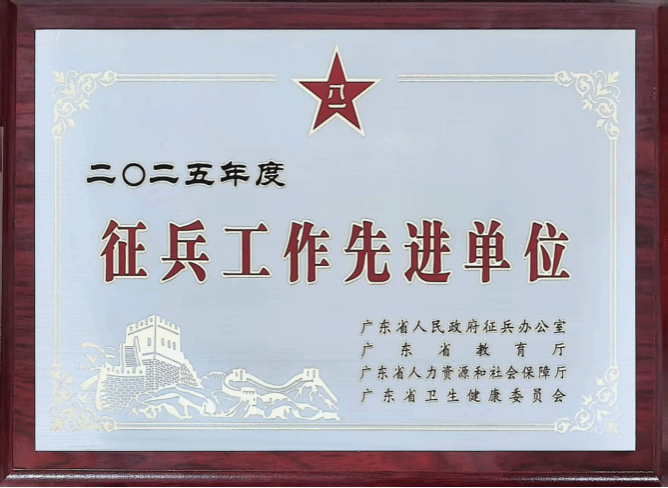近日,广东省人民政府征兵办公室、广东省教育厅、广东省人力资源和社会保障厅、广东省卫生健康委员会联合发布《2025年度征兵工作先进单位表扬通报》,对全省征兵工作先进单位予以表彰。我校凭借扎实的征兵工作举措,获评“2025年度征兵工作先进单位”。这也是继荣获“2025年度广东省国防教育先进单位”后,我校再次获得该类殊荣,彰显了学校在大学生征兵工作中的扎实成效与责任担当。