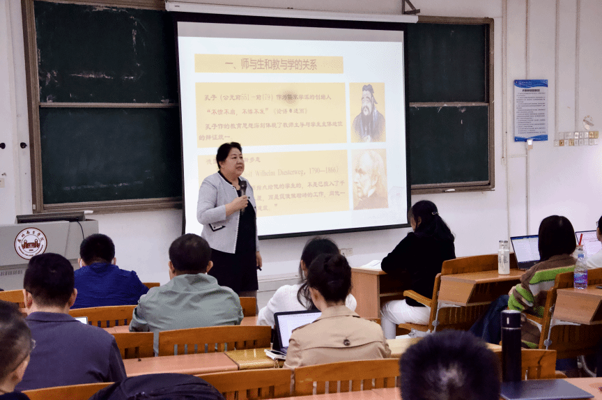 随后,王亚欣教授紧扣教育部等六部委联合印发的《关于加强新时代高校青年教师队伍建设的指导意见》要求以及习近平总书记关于教育的重要论述,结合近38年高校教育教学经验和丰富的课堂督导经历,从“师与生、教与学的关系”“主导作用与主体地位的内涵”“课堂教学设计与实践”“课堂教学管理的要点”“科研反哺教学的案例”多个维度系统讲解课堂教学内容的处理和教学方法的运用。针对教学管理,王亚欣教授提出建议,强调教师要“以身作则”“率先垂范”,以良好的职业态度和形象赢得学生的尊重。最后,她用“始终拥有激情和热爱教育事业的初心,一如既往地传承和发扬教育的真谛;永远保持对教育事业的热爱和忠诚,把教师从谋生的职业转变成事业的追求。”激励新入职教师全身心投入教育教学工作。