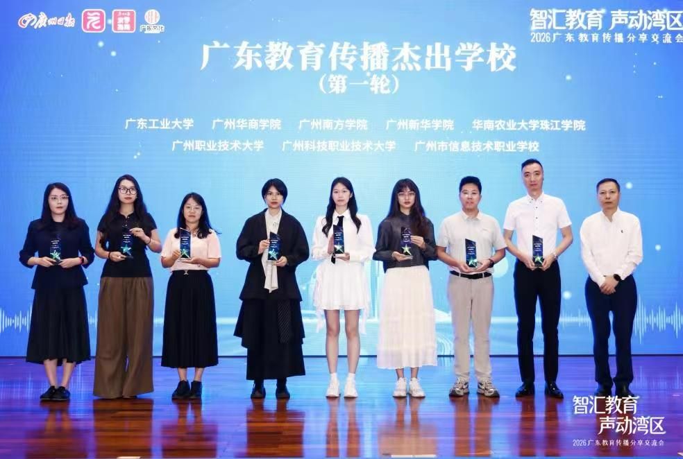 3月26日,由广州教育学会指导、广州日报报业集团(广州日报社)主办的“智汇教育 声动湾区——2026广东教育传播分享交流会”在广州报业文化中心举行。我校应邀参会并荣获“广东教育传播杰出学校”。